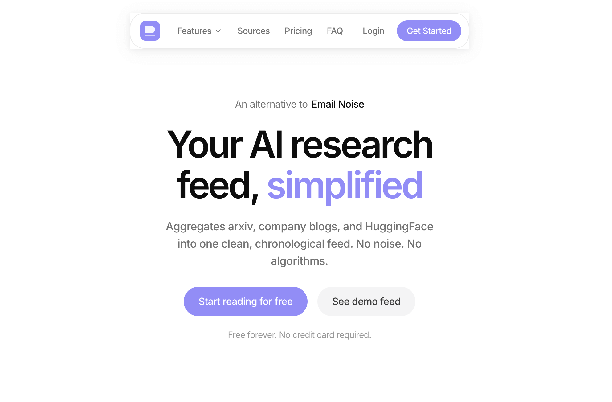 A distraction-free reader for AI research papers and news. Aggregates arxiv, company blogs, and HuggingFace into one clean, chronological feed.